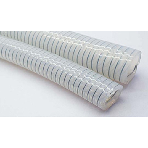 Platinum cured Silicone hose reinforced with SS 316L Helical wire. It has better transparency to visualize low and kink resistance. it is designed for material transfer application under high vacuum in pharmaceutical industries. The product is more superior for high pressure & high vacuum rating applications. It is also used for antistatic application.